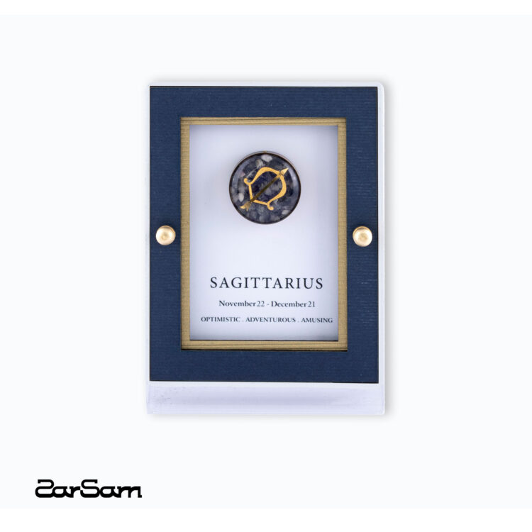 تابلوهای طلا زرسام برای متولدین آذر، ترکیبی از نماد قوس و صورت فلکی این ماه را در خود دارند. زمینهی تیره و طلای ۲۴ عیار درخشان، تضادی زیبا و چشمگیر ایجاد کرده است.
