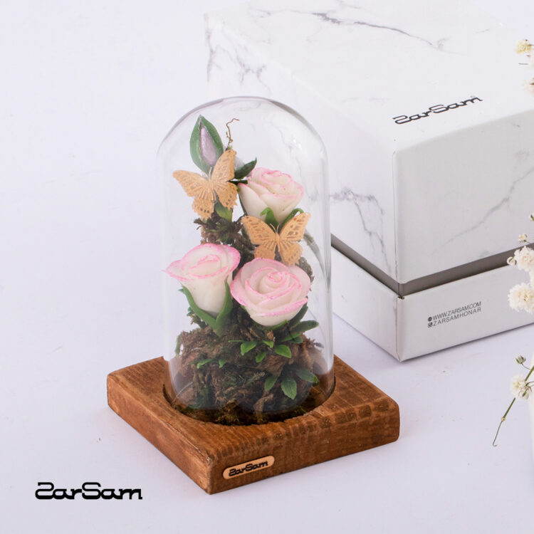 - تندیس گلستان: ترکیب هنرمندانه گلهای برجسته با درخشش ورق طلا، مناسب برای هدیه و دکور رسمی.