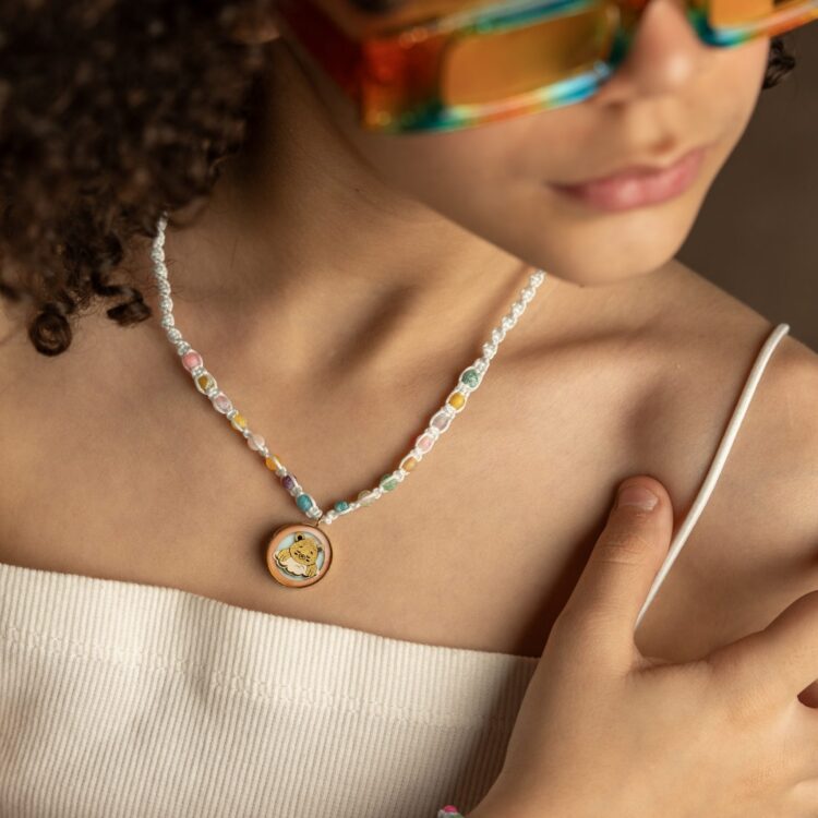 گردنبند بچه گانه پاندا با ورق طلا و سنگ سری شادی