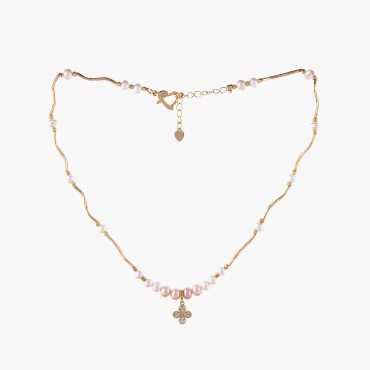 گردنبند مروارید زنانه شیفته با آبکاری طلا سری زروار