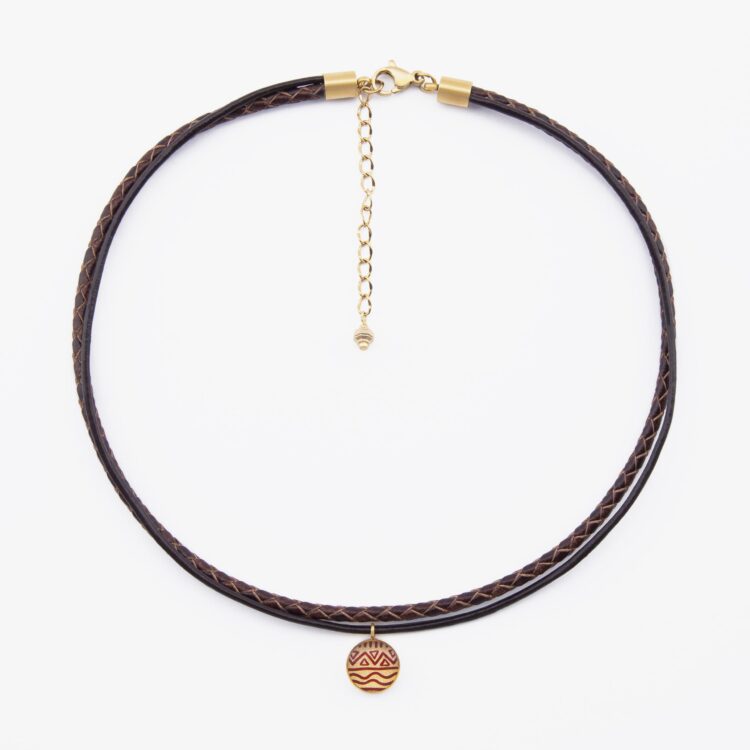 دستبند زنانه مهر با ورق طلا و چرم سری زندگی