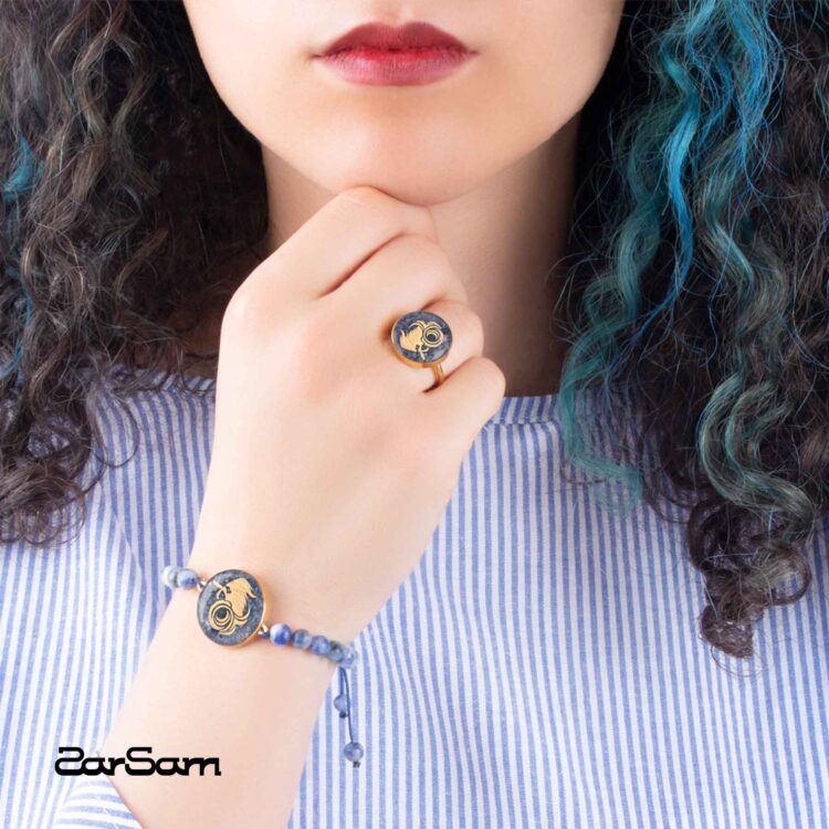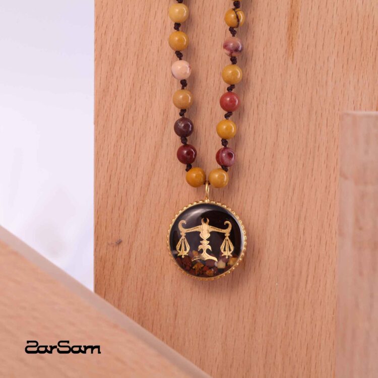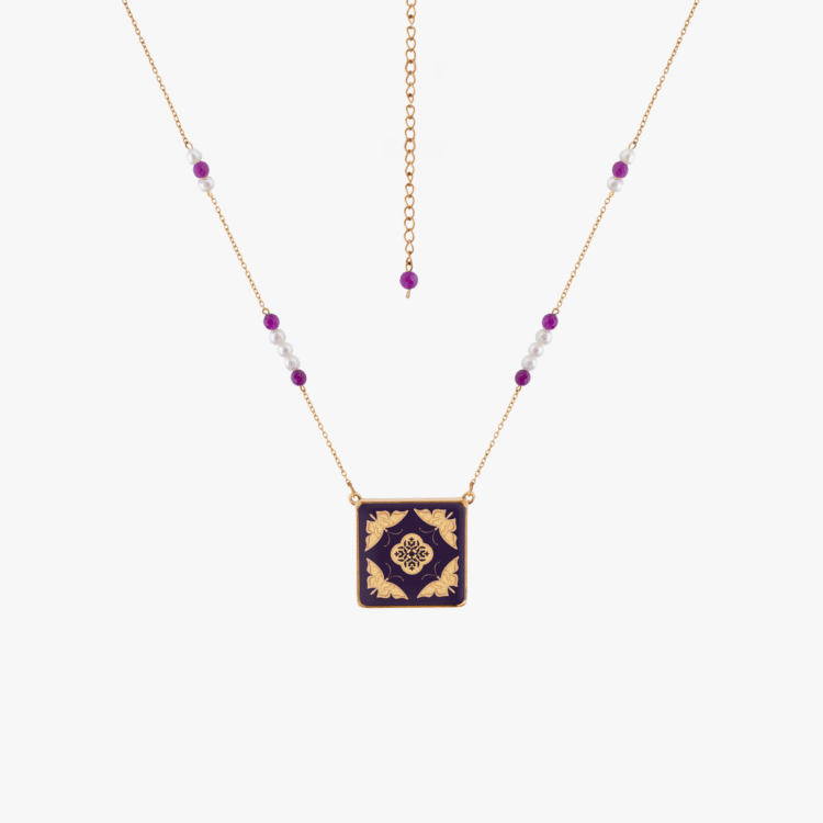 گردنبند زنانه آبان با ورق طلا و سنگ سری مانی کلاسیک