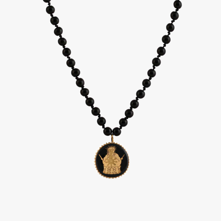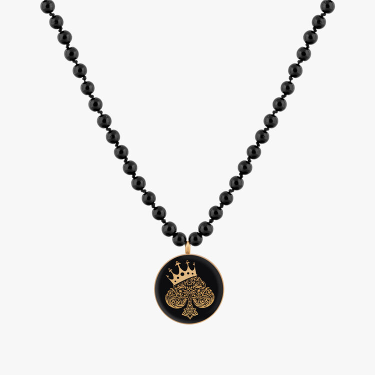 گردنبند مردانه تاج با ورق طلا و سنگ سری مانی گره ای