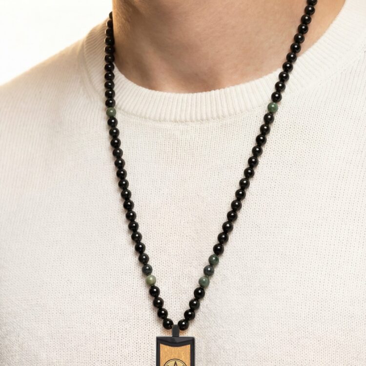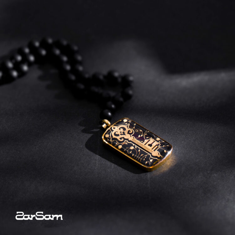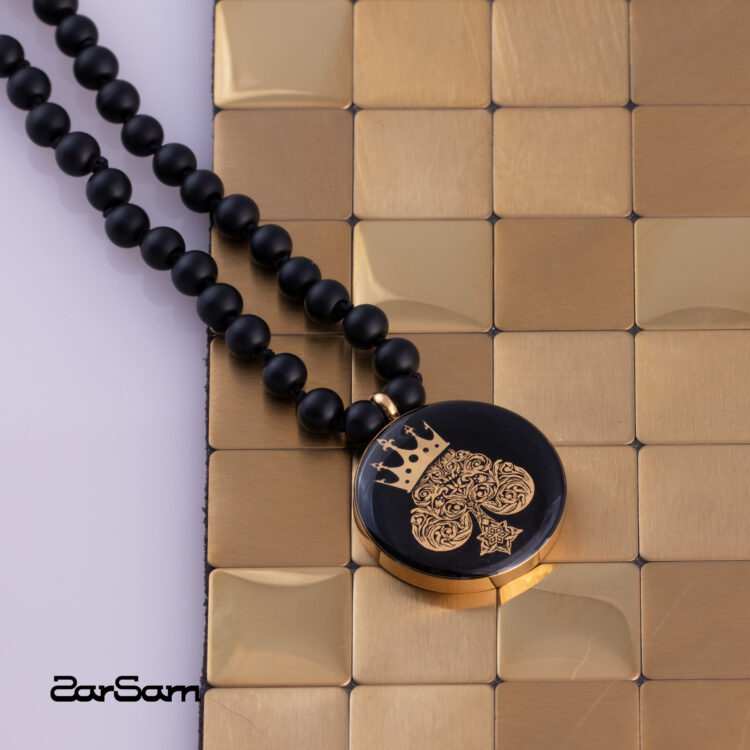 گردنبند مردانه پیک با ورق طلا و سنگ سری مانی کلاسیک