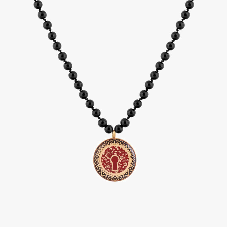 گردنبند زنانه آبان با ورق طلا و سنگ سری مانی گره ای قفل دار