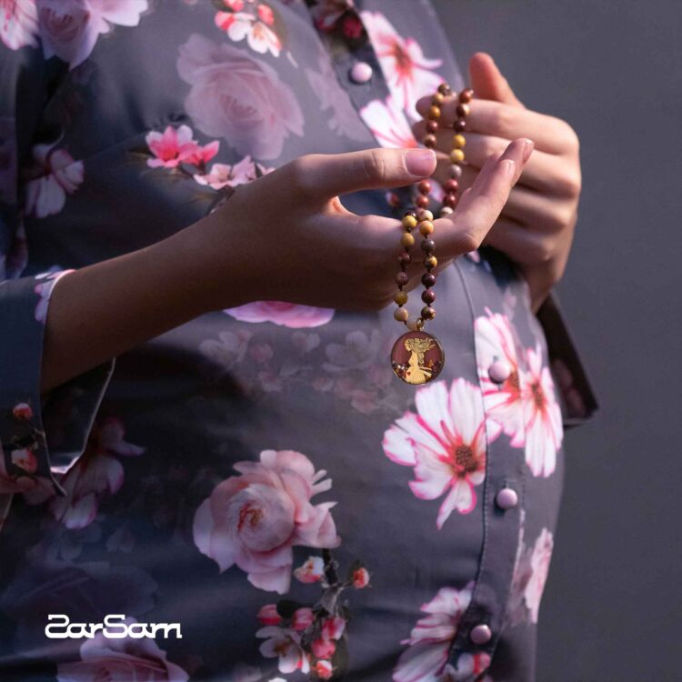 گردنبند زنانه بارداری با ورق طلا و سنگ سری مانی کلاسیک