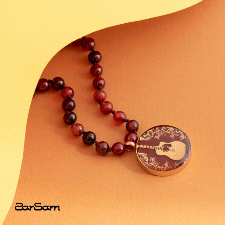 گردنبند زنانه گیتار با ورق طلا و سنگ سری مانی کلاسیک