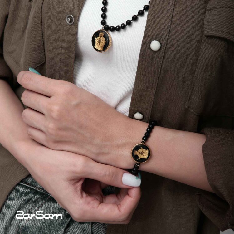 دستبند زنانه انار با ورق طلا و سنگ سری مانی کلاسیک