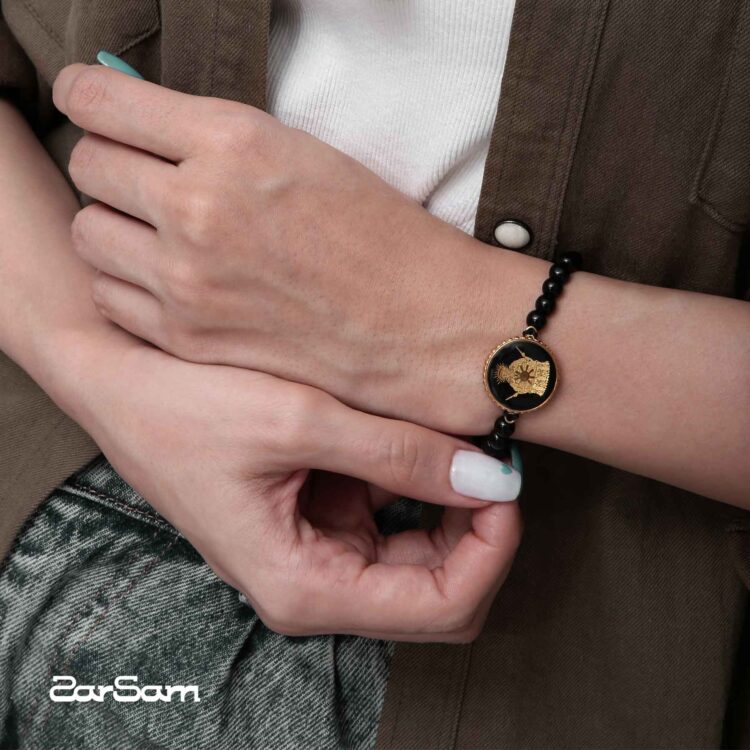 دستبند مردانه آبان V2 با ورق طلا و سنگ سری مانی کلاسیک