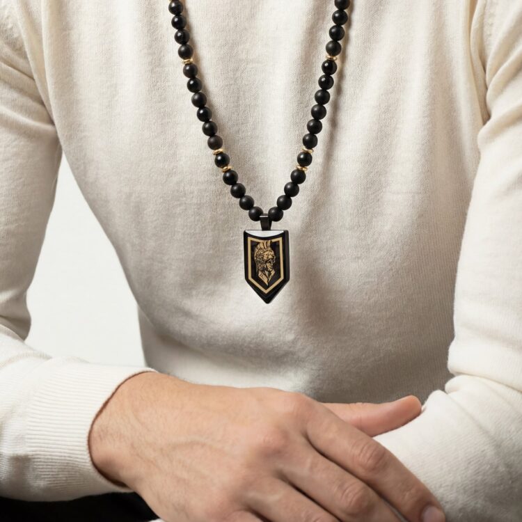 گردنبند مردانه گلادیاتور با ورق طلا و سنگ سری پیکان