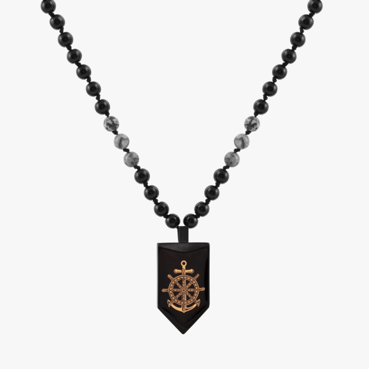 گردنبند مردانه لنگر با ورق طلا و سنگ سری ایستا