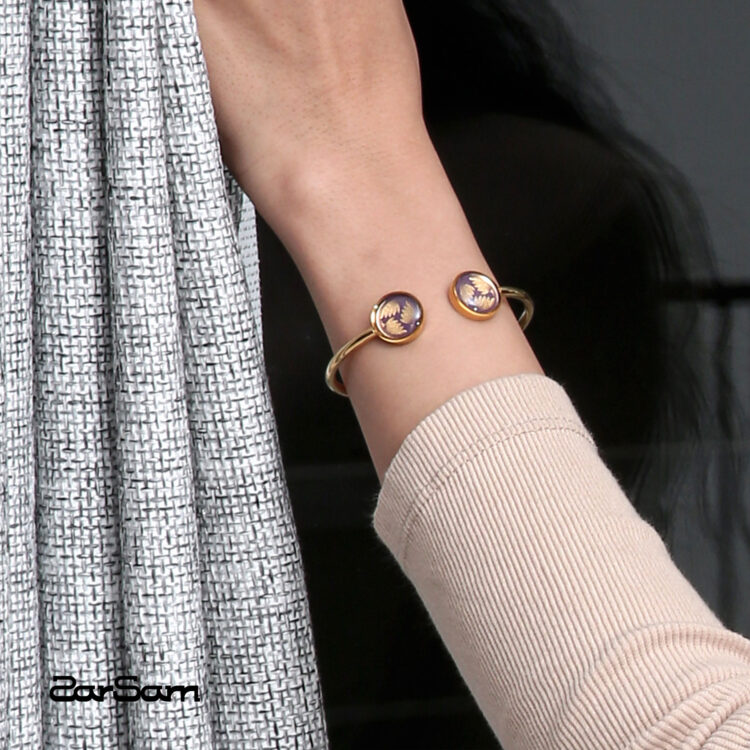 دستبند بنگل زنانه نیلگون با ورق طلا سری مهرسا