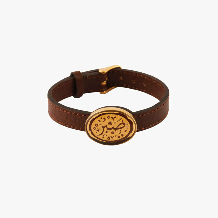 دستبند مردانه صبر با ورق طلا و چرم سری برنا