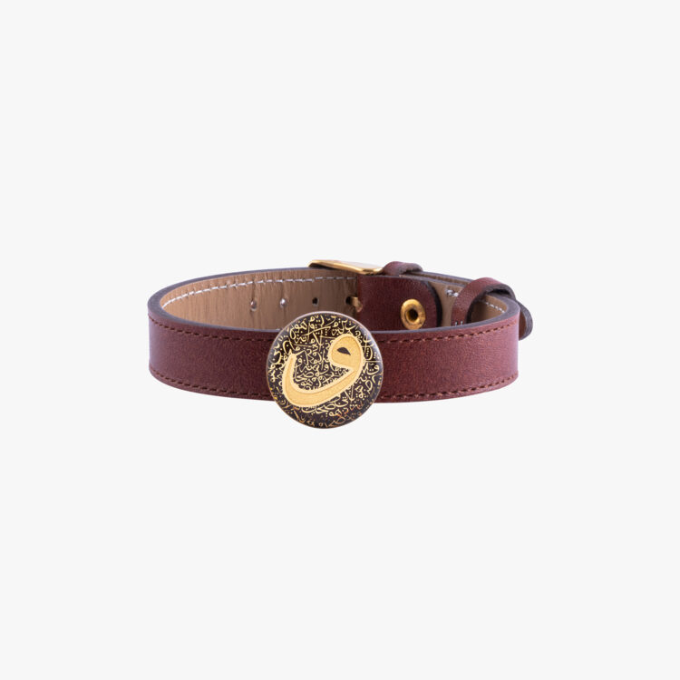 دستبند مردانه الفبا با ورق طلا و چرم سری جهان