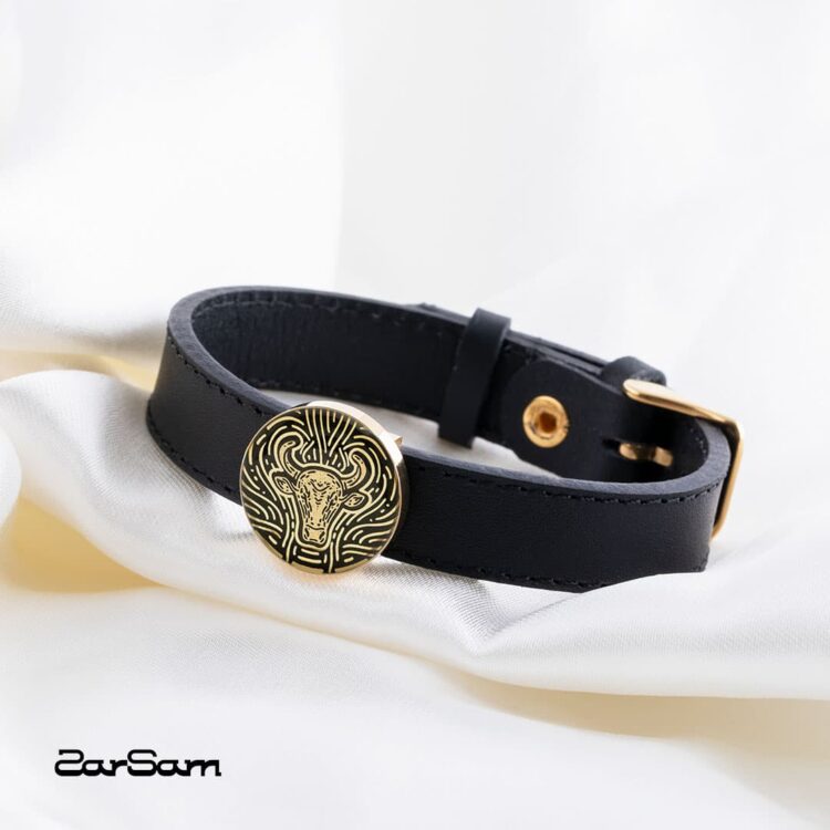 دستبند مردانه اردیبهشت با ورق طلا و چرم سری سپهر