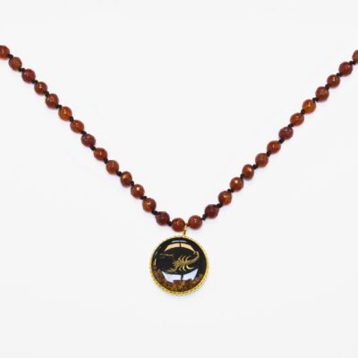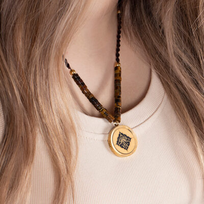 گردنبند زنانه آبان با ورق طلا و سنگ سری مانی گره ای قفل دار