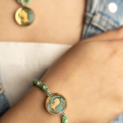 دستبند بچه گانه دایناسور با ورق طلا و سنگ سری شادی