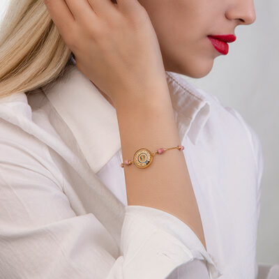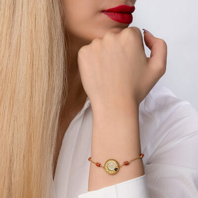 دستبند زنانه دی با ورق طلا و سنگ سری صنم