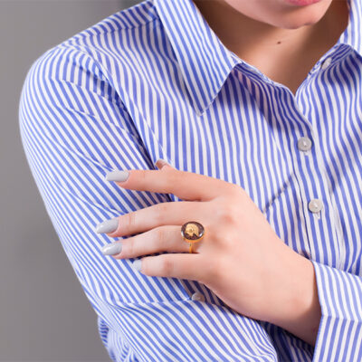 انگشتر زنانه قاصدک از مجموعه زیورآلات زنانه زرسام، تجسمی از آرزوها، امید و زیبایی در قالبی از ورق طلای 24 عیار است. در طراحی این اثر شاعرانه، قاصدک بهعنوان نماد شانس و رؤیا انتخاب شده؛ گلی سبک و آزاد که با هر نسیم، پیام عشق و آرزو را به دوردستها میبرد. ترکیب درخشش طلایی با زمینهی سرمهای عمیق، حس آرامش و امید را القا میکند؛ درست همانگونه که نگاه به قاصدک، یادآور لحظهای از سکوت، لبخند و خواستن است. انگشتر قاصدک، نهتنها زیوری برای دست، بلکه پیامی از لطافت روح و ایمان به زندگی است.