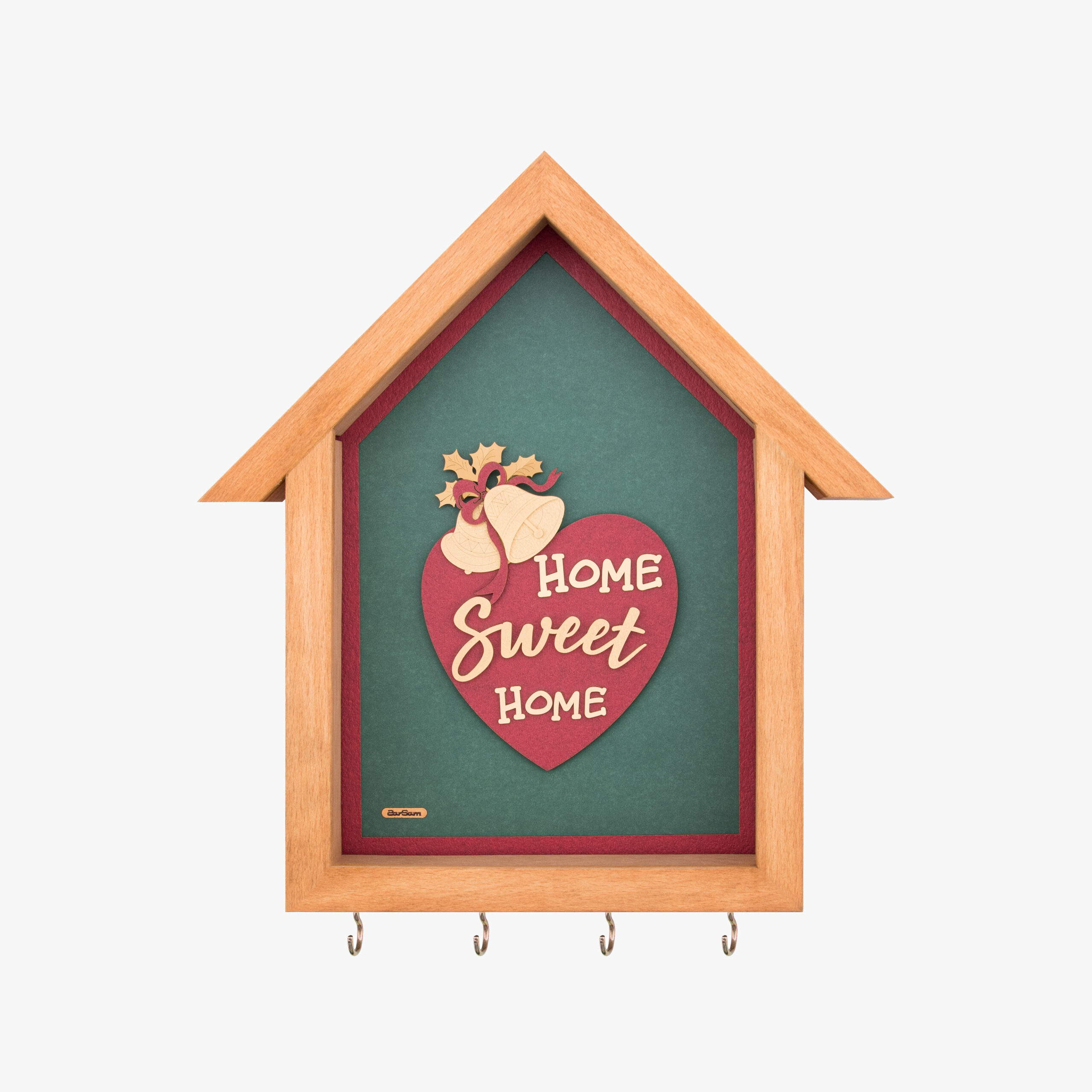 در دنیای پرشتاب امروز، خانه همچنان امنترین و عزیزترین نقطه برای هر انسان باقی مانده است. طراحی این جاکلیدی با الهام از فرم کلبه و ترکیب آن با رنگهای طبیعی و آرامشبخش، نمایشی نمادین از پناهگاه بودن خانه ارائه میدهد. در بخش مرکزی این اثر، طرحی هنرمندانه با ابعاد ۶ در ۱۳ سانتیمتر، با استفاده از ورق طلای ۲۴ عیار اجرا شده است که درخشش و شکوه خاصی به این قاب چوبی میبخشد. رنگ سبز زمینه نیز، یادآور طبیعت، رشد و آرامش درون خانه است.