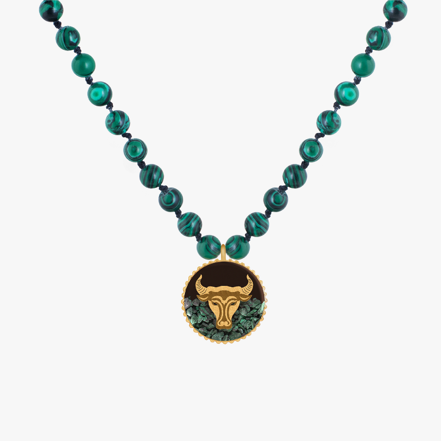 در این محصول طراح با نهایت سادگی و زیبایی، نماد متولد اردیبهشت را که از جنس ورق طلا میباشد در مرکز کار قرار داده است. استفاده از خرده سنگ در زمینه به برجسته شدن این نماد کمک شایانی کرده است.