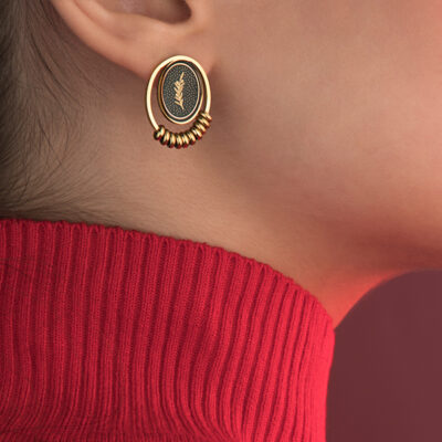 این گوشواره استیل زنانه و دخترانه به زیبایی بر روی لاله گوش قرار می گیرد و مقداری از آن پایین تر از لاله گوش قرار می گیرد و به زیبایی با انواع مدل مو و لباس های متفاوت استایل می شود.ترکیب رنگ طلایی با سبز به همراه تصویر برگ ظریف که در طراحی این گوشواره میخی با طلا عجین می شود، ظاهری دوست داشتنی و مجذوب کننده دارد. این مدل گوشواره میخی فانتزی زرسام بهترین گوشواره برای دختران و خانم های امروزی است که به گوشواره با مدل های ساده و مینیمال علاقه دارند. زیرا با طراحی ظریف و خاص خود مکمل انواع استایل های زنانه و دخترانه است و می تواند بهترین کادو برای جوانان در مناسبت های مختلف باشد.