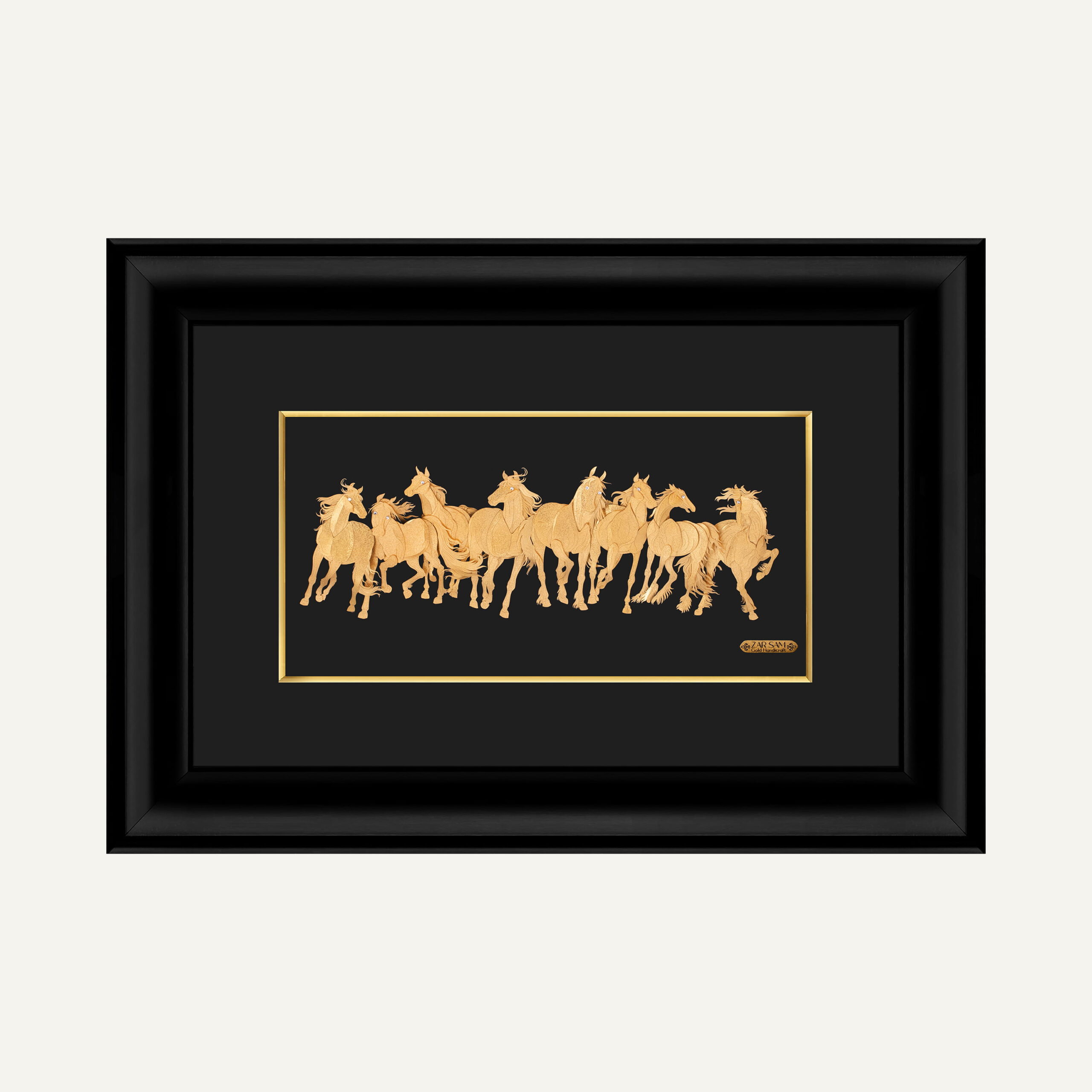 ایرانیان باستان همان گونه كه برای خود و خانواده خویش از اهورا مزدا طلب نیكی میكردند، برای اسب خود نیز نیرومندی میخواستند.با توجه به مقبولیت این حیوان و نمادین بودن آن با خصوصیات برجستهیی همچون نجابت و شجاعت، طراح در این محصول از عنصر اسب با ورق طلا استفاده کرده و این تابلوی زیبا را خلق کرده است.