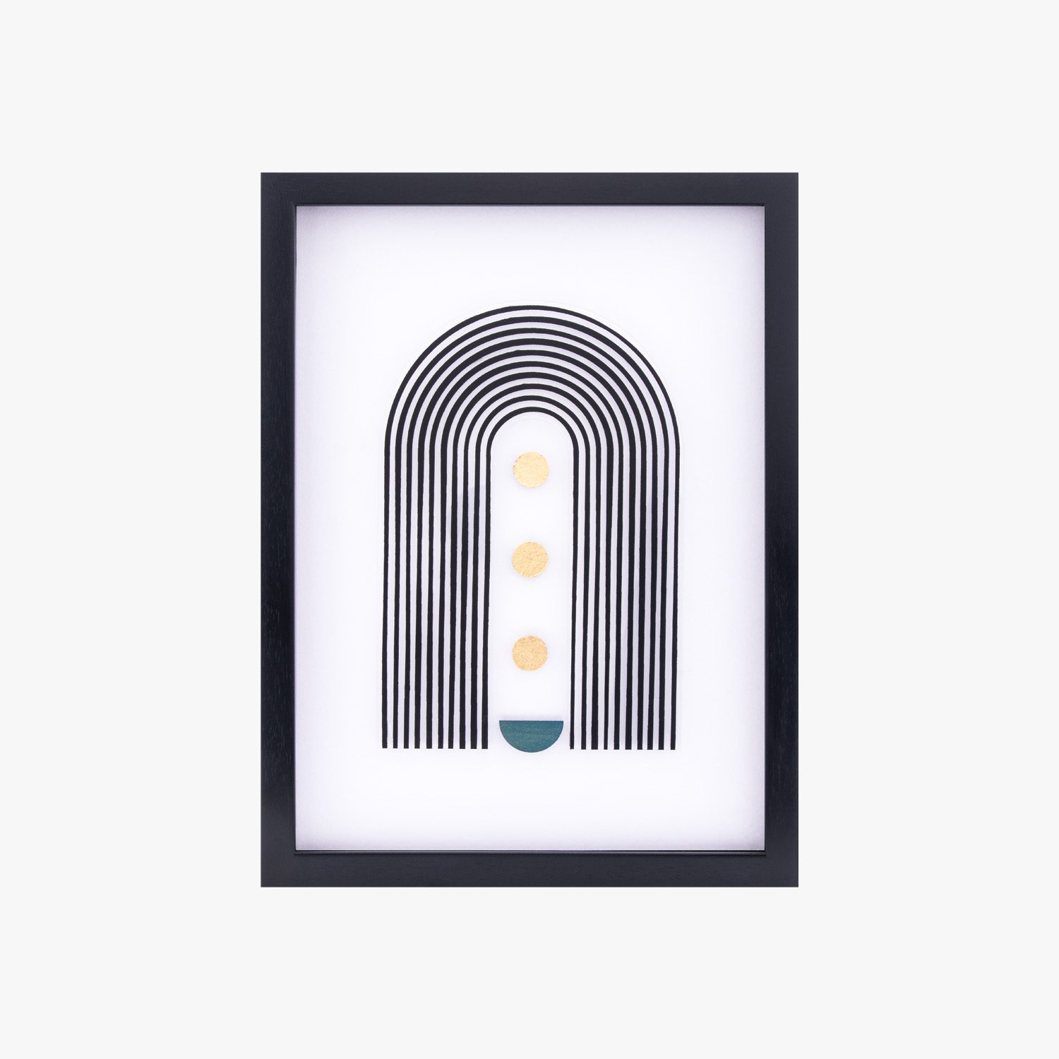 تابلو طلا ساران با ابعاد ۳۰×۴۰ سانتیمتر و وزنی حدود ۱۵۰۰ گرم، مناسب نصب در فضاهای خانگی، اداری یا گالریهای هنری است. فریم PVC مشکی با سطحی صاف و باکیفیت، جلوهای مدرن و چشمگیر دارد. طرح طلایی در مرکز اثر از ورق طلای 24 عیار ساخته شده که با دقتی استادانه روی زمینه مقوای ماکت سفید نصب شده است. ابعاد طرح طلایی (۲×۶ سانتیمتر) با ظرافت در مرکز ترکیب قرار گرفته تا نگاه بیننده را به درخشش آغازین خود جلب کند.