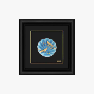 تابلو با گلهای داوودی طلایی رنگ که در پشت آن سفالینهای به رنگ فیروزهای تعبیه شده است، آیتم بسیار مناسب و جذابی برای تزیین محل کار و خانه میباشد. به علاوه مفهوم نمادین گلهای داوودی هم گزینهی قابل توجهای ست که به ارزش و اعتبار این محصول میافزاید.