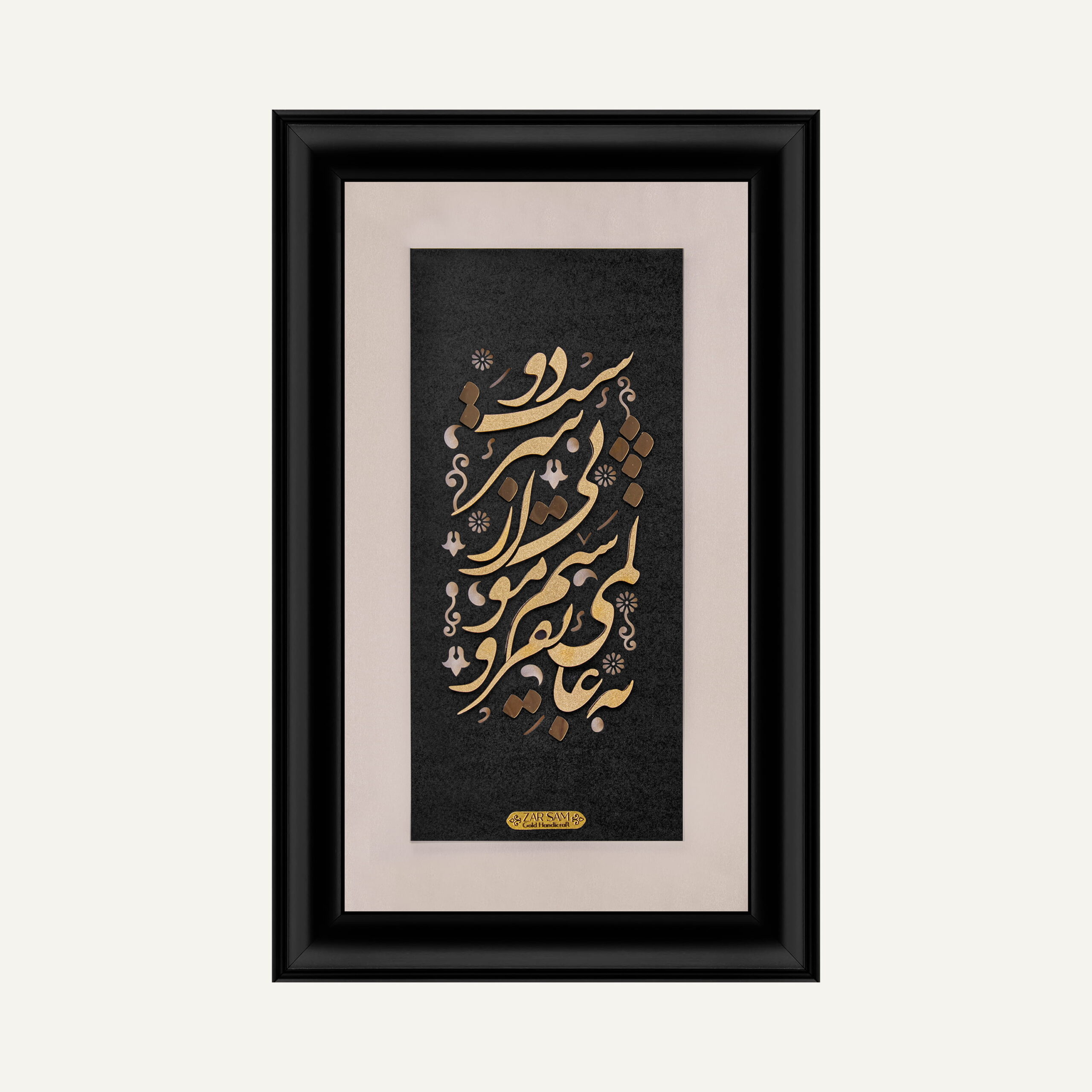 طراح در این تابلو مصراع ” به عالمی نفروشیم مویی از سر دوست ” از حافظ را در مرکز کار قرار داده و با چیدمان متفاوت نقطهها و استفاده از طرحهای ظریف در زمینه بر زیبایی و ظرافت کار افزوده است.