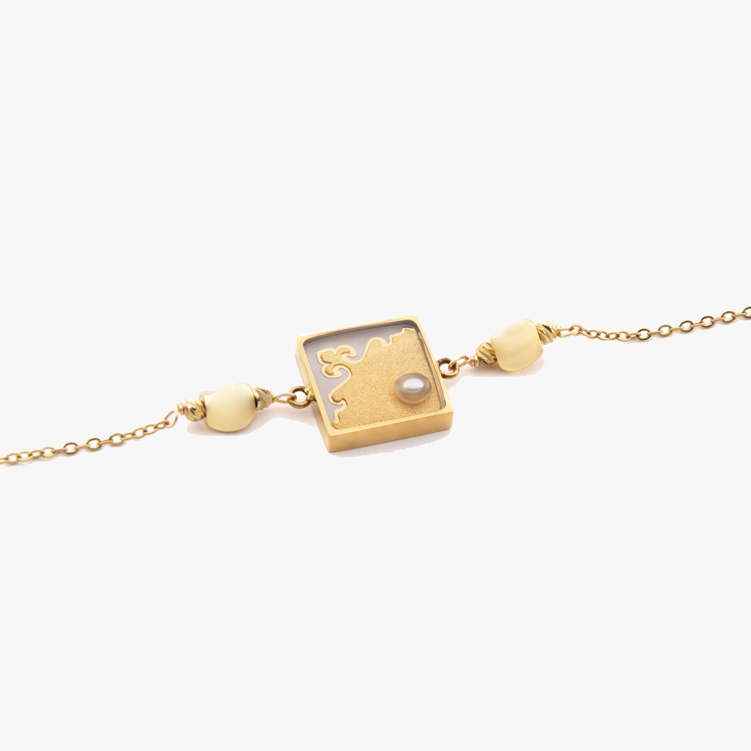 دستبند زنانه شمیسا با ورق طلا و زنجیر سری یزدان