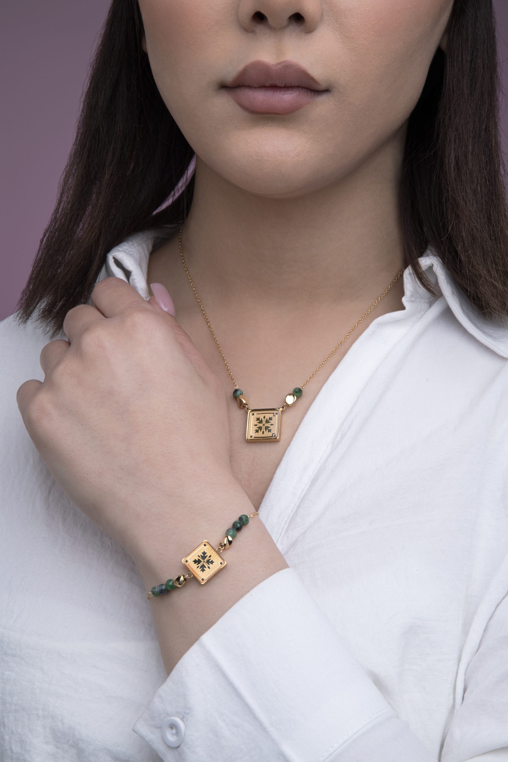 ورق طلای ۲۴ عیار در بخش اصلی و شاخص طراحی زیورآلات بهکار رفته و بسته به مدل، بهصورت نماد یا المان تزئینی استفاده میشود.