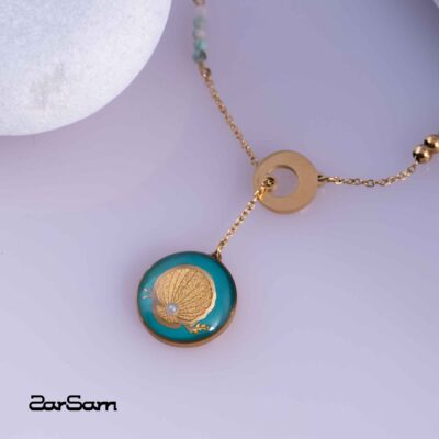 استفاده از طلای خالص در طراحی پولک، جلوهای لوکس، ماندگار و خاص به این زیور بخشیده است. - سنگ طبیعی کریزوکولا با رنگ ترکیبی آبی