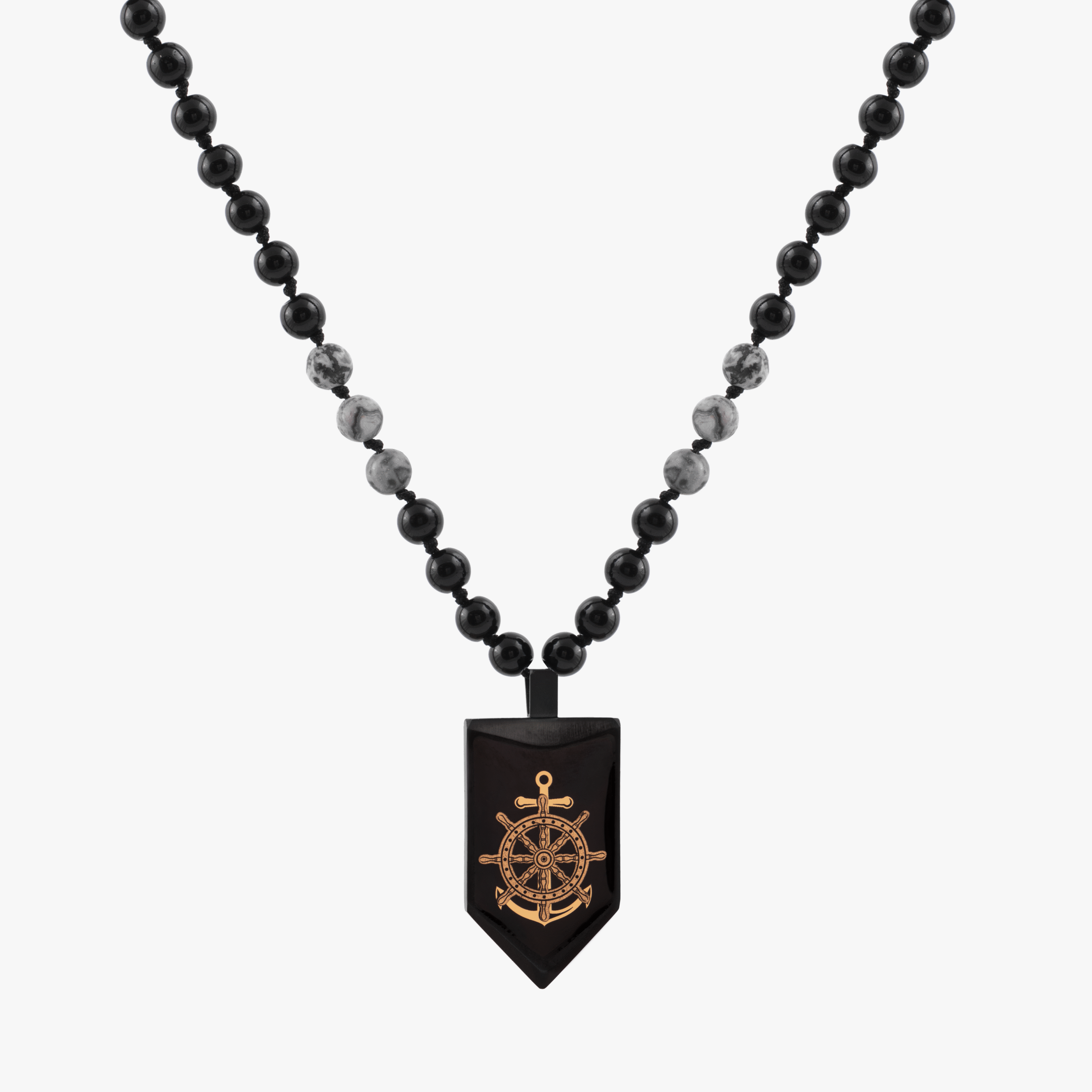 گردنبند مردانه لنگر با ورق طلا و سنگ سری پیکان