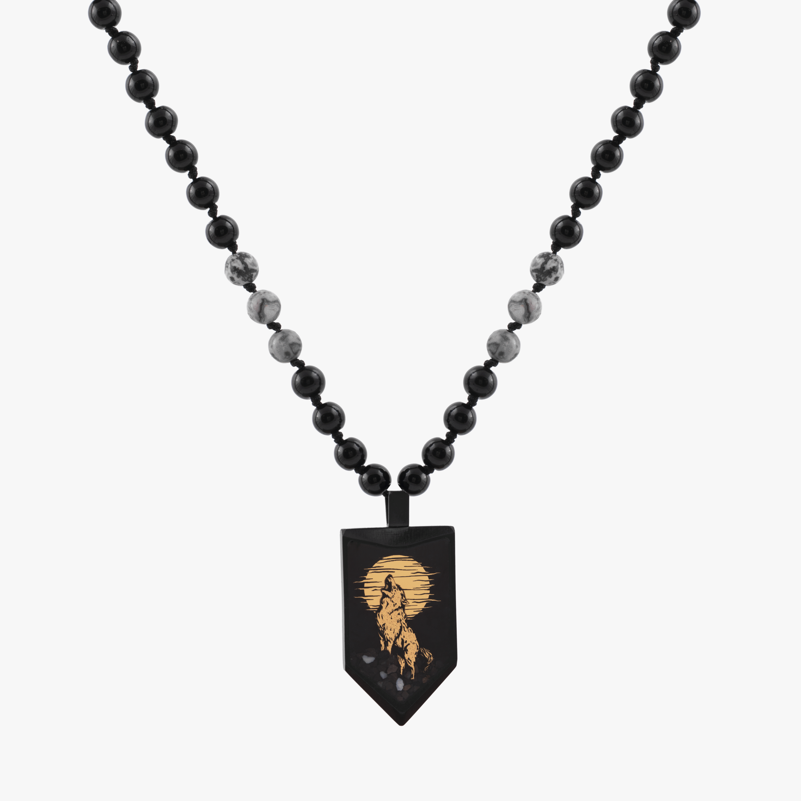 گردنبند مردانه گرگ و ماه با ورق طلا و سنگ سری پیکان