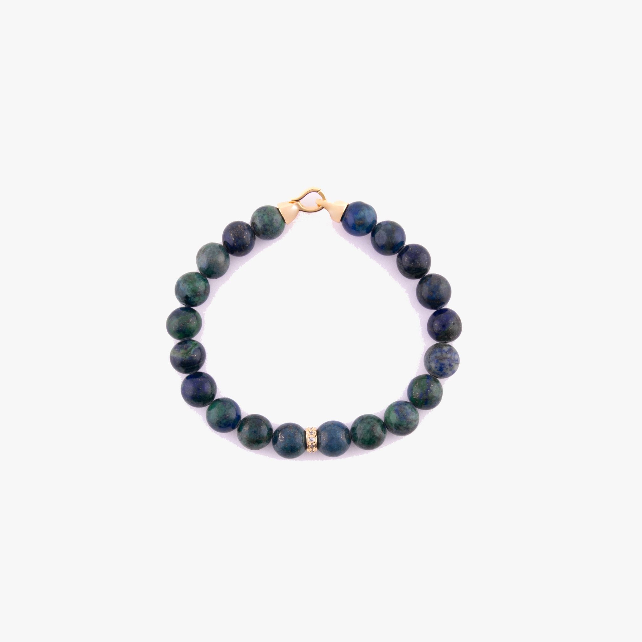 آزوریت، سنگی است که به بانوان آرامش، تمرکز و درک عمیق میبخشد. این دستبند نهتنها یک اکسسوری ظریف بلکه ابزاری برای بازیابی انرژی و آرامش درونی است. رنگ آبی تیرهی آن ذهن را به سکوت دعوت میکند و رنگ سبزِ درونش، نشانهای از رشد، ترمیم و امید است.