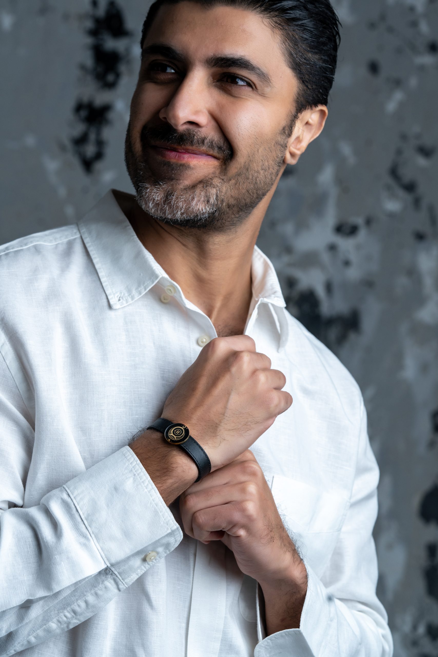 دستبند اردیبهشت از سری جهان با ورق طلای 24 عیار و چرم مشکی درجه یک توسط دستان هنرمندان برند زرسام تولید می شود.