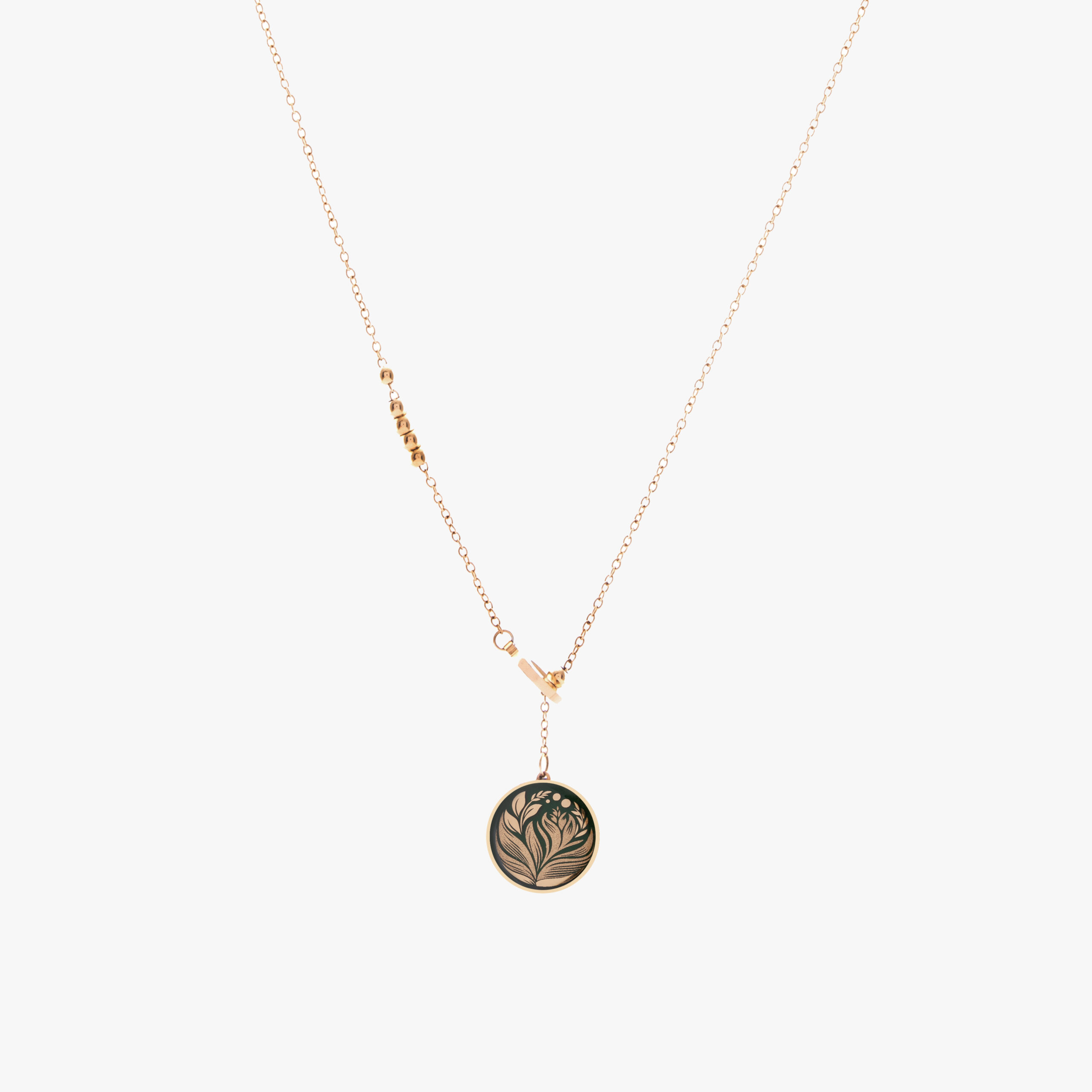 در طراحی گردنبند چیچک، مفهوم زندگی، رشد و پیوند با طبیعت بهزیباترین شکل بازآفرینی شده است. برگ، نمادی از تولد دوباره، تداوم حیات و امید است و حضور آن در دایره، نشانهای از چرخهی جاودان طبیعت است.
