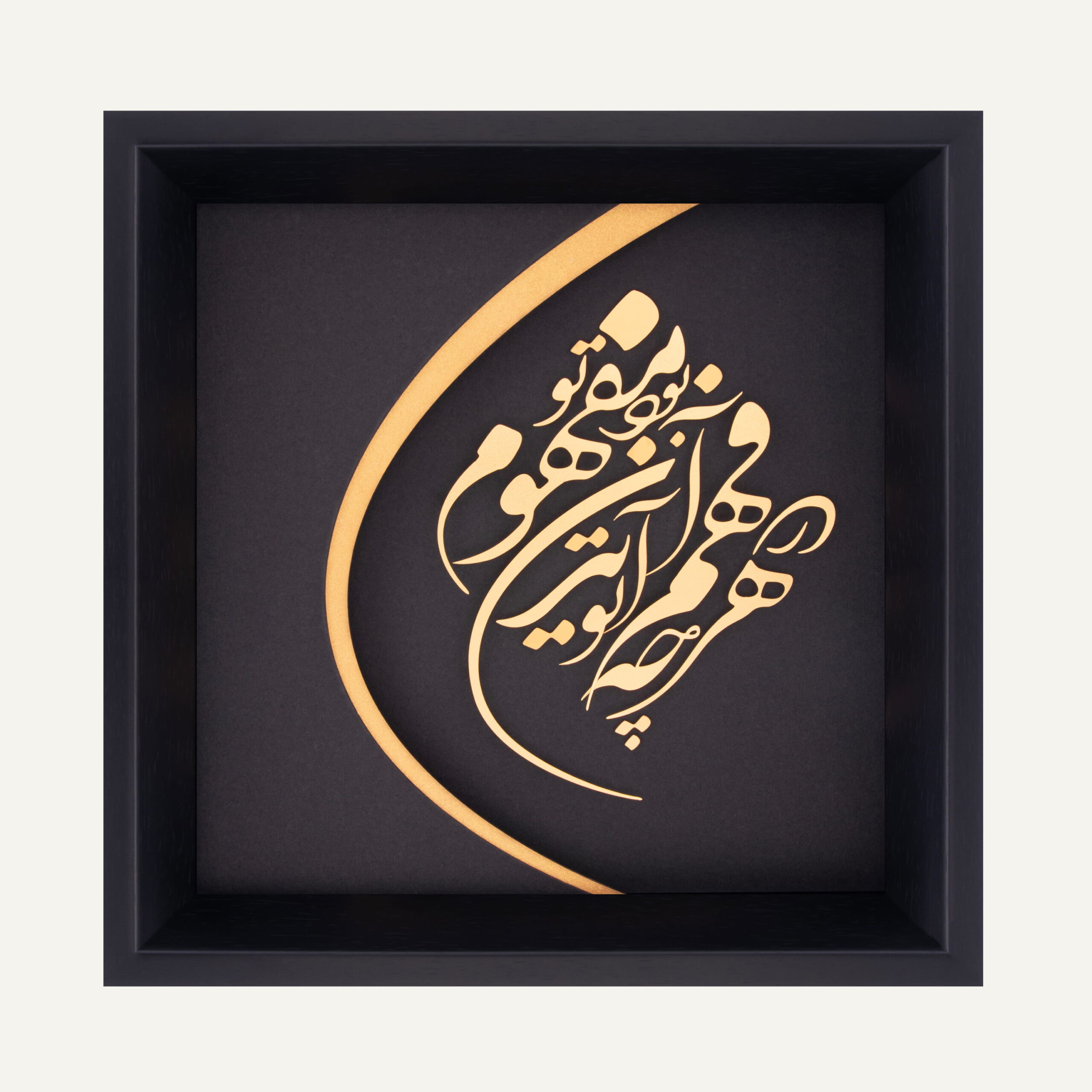 تابلو فهم، اثریست برای آنان که در سکوت، معنا را میجویند. ترکیبی از شعر عارفانه، طراحی مینیمال و درخشش طلا که بهزیبایی، مرزهای درک و حیرت را به تصویر میکشد.