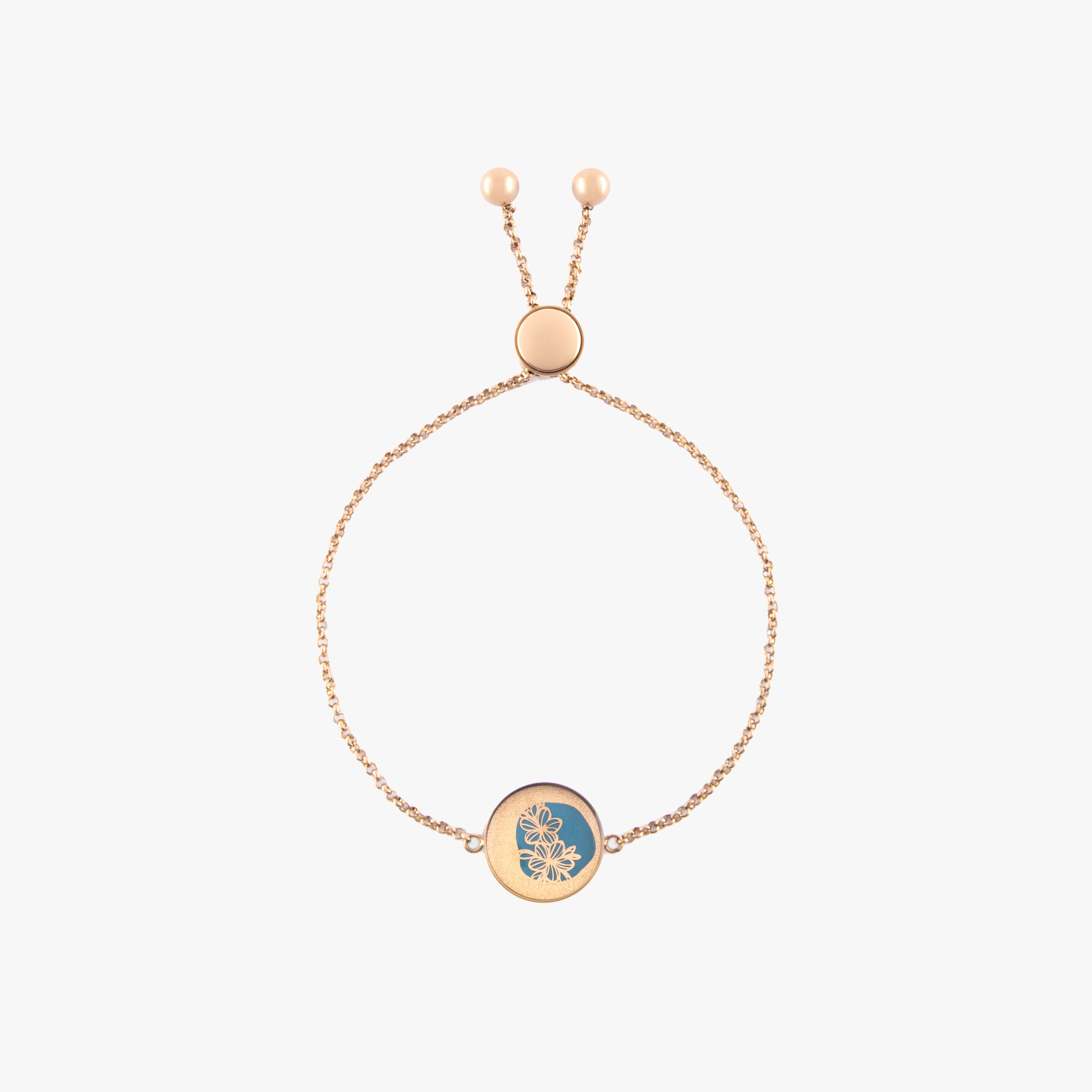 در طراحی دستبند گلسا، از گل بهعنوان سمبلی از شکوفایی، عشق و تداوم زندگی استفاده شده است. گل، یادآور زنانگی و طبیعت است؛ نشانهای از لطافت و قدرت همزمان. در مرکز طرح، نقش گل با ورق طلای 24 عیار بر زمینهای از رنگ سبزآبی آرام گرفته است — رنگی که حس آرامش، طراوت و پیوند با طبیعت را القا میکند.