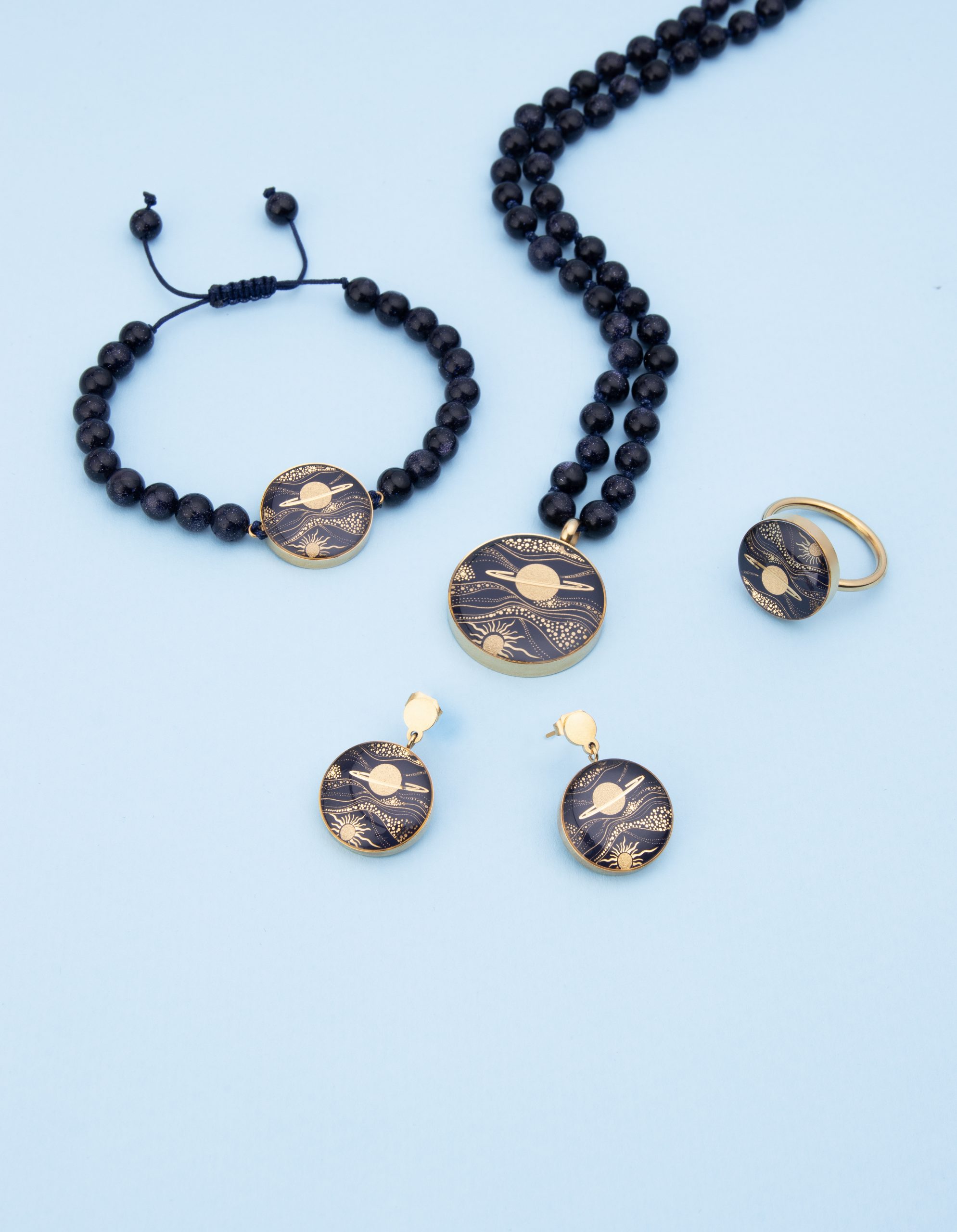 طرح “کهکشان” در این دستبند، بازتابی از زیبایی بیکران جهان هستی و شگفتیهای آسمان شب است. ترکیب رنگهای سرمهای و طلایی، حس اسرارآمیزی از کیهان و سیارهها را تداعی میکند و این محصول را به انتخابی خاص برای علاقهمندان به زیباییهای کیهانی تبدیل کرده است.