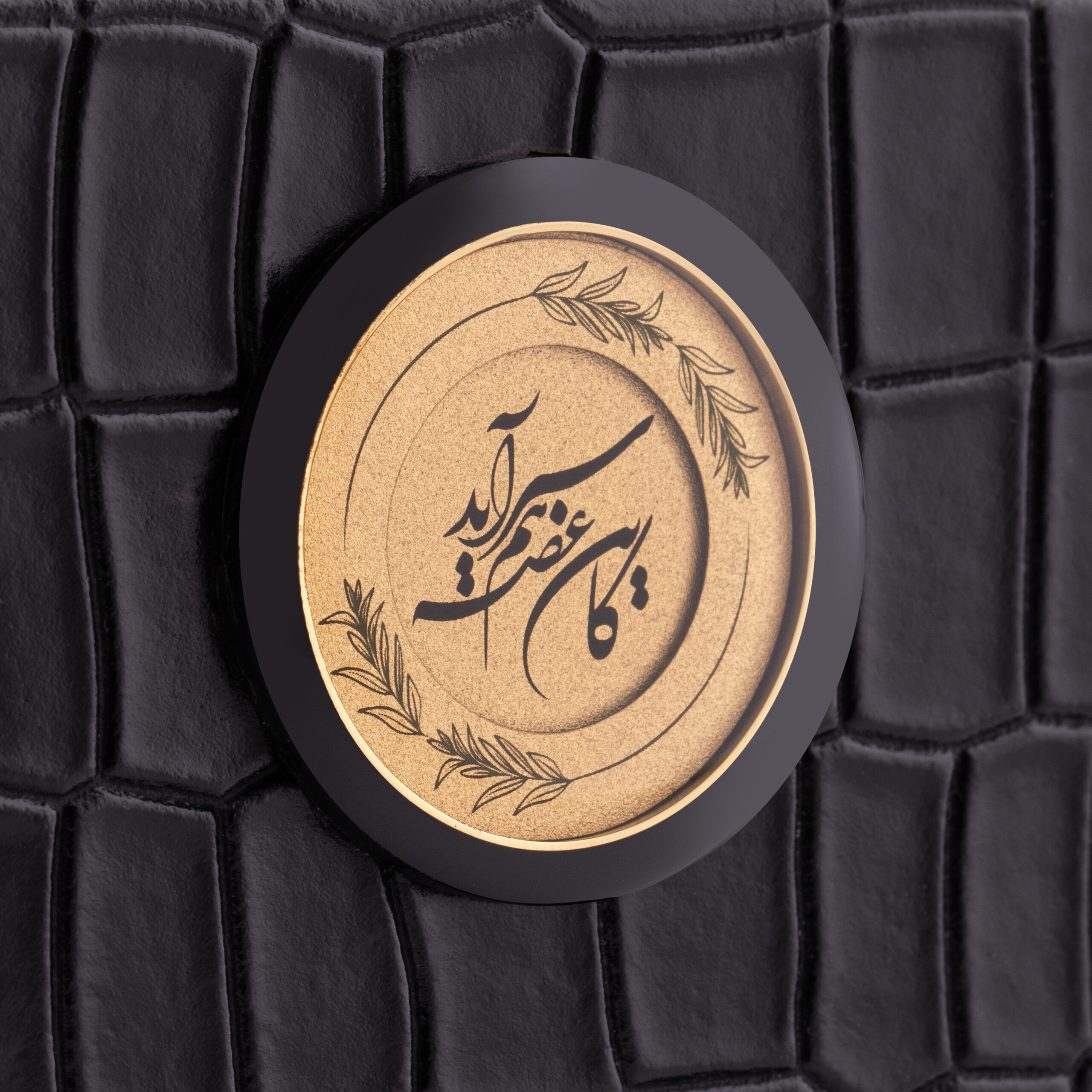 جنس زمینه طرح ترکیبی از رزین و ورق طلای 24 عیار است و رنگ زمینه طلایی، مشکی و سبز انتخاب شده تا پیوندی میان معنا، طبیعت و آرامش ایجاد کند. وزن تقریبی محصول حدود ۳۰۰ گرم است که حس استحکام و کیفیت ساخت بالا را بهخوبی منتقل میکند. این جاقلمی همراه با شناسنامه محصول و دفترچه راهنما ارائه میشود.