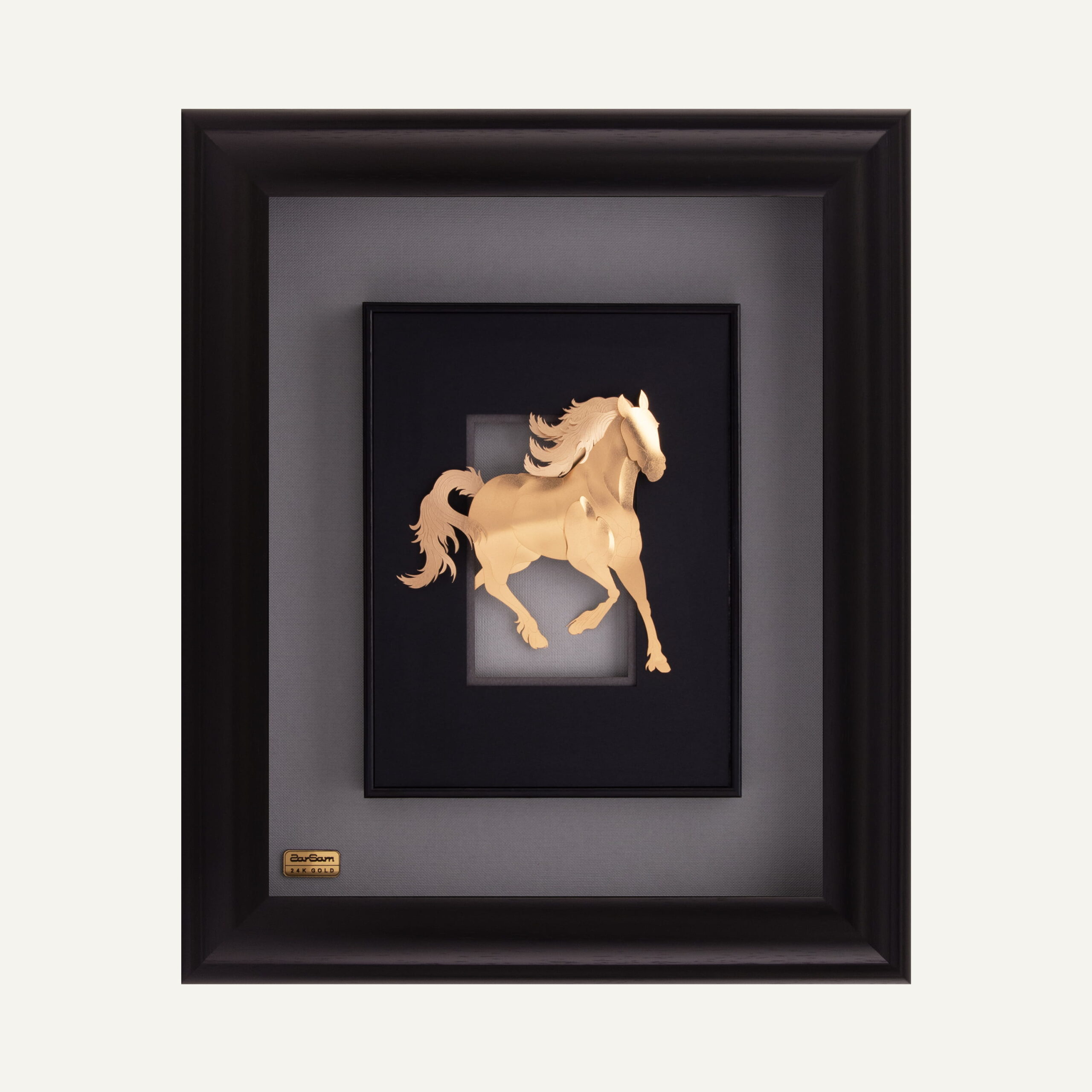 کانسپت این تابلو ریشه در نمادشناسی جهانی اسب دارد. در فرهنگهای کهن، اسب نماد قدرت حیاتی خام، انرژی غریزی پرشتاب، حرکت زمان و گردش فصلها است و اغلب به خورشید و نیروهای بنیادین طبیعت پیوند خورده است. طراحان زرسام با خلق جلوه خروج اسب از کادر، بر این مفاهیم تأکید مضاعف کردهاند. این ترکیببندی پویا، احساس رهایی، حرکت رو به جلو و شکستن محدودیتها را القا میکند. استفاده استراتژیک از ورق طلای ۲۴ عیار برای بخشهایی از بدن اسب، این موجود نجیب را در هیبت موجودی نورانی و مقدس نمایش میدهد و بر نقش آن به عنوان منبع انرژی و روشنایی تأکید میورزد. این اثر، برای کسانی که به زیباییشناسی همراه با معنویت در دکوراسیون علاقه دارند، طراحی شده است.