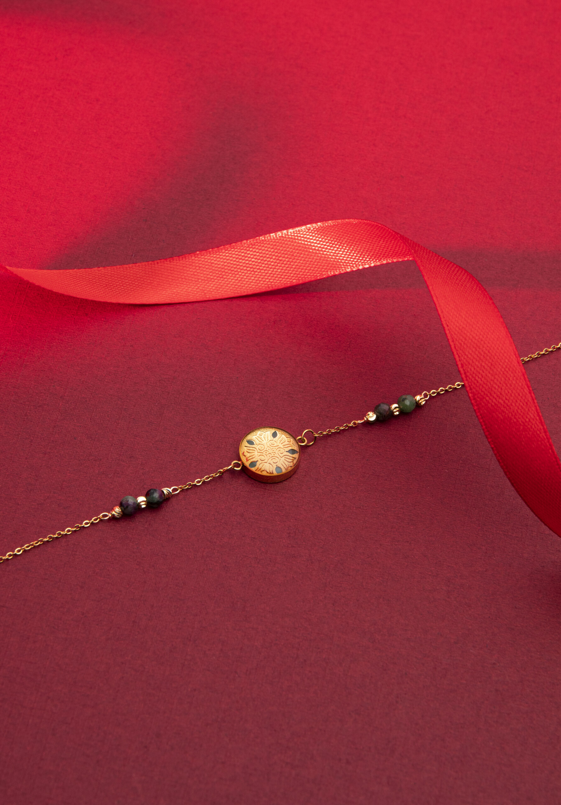 دستبند زنانه مروا با ورق طلا و زنجیر سری مانیمو