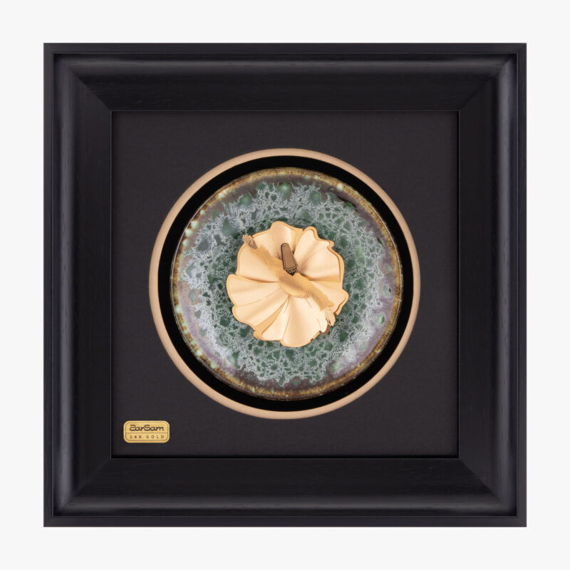 بهتر است این اثر در محیطی با دمای متعادل و نور غیرمستقیم نصب شود تا ورق طلای 24 عیار و لعاب سرامیکی آن درخشش طبیعی خود را برای سالها حفظ کنند.