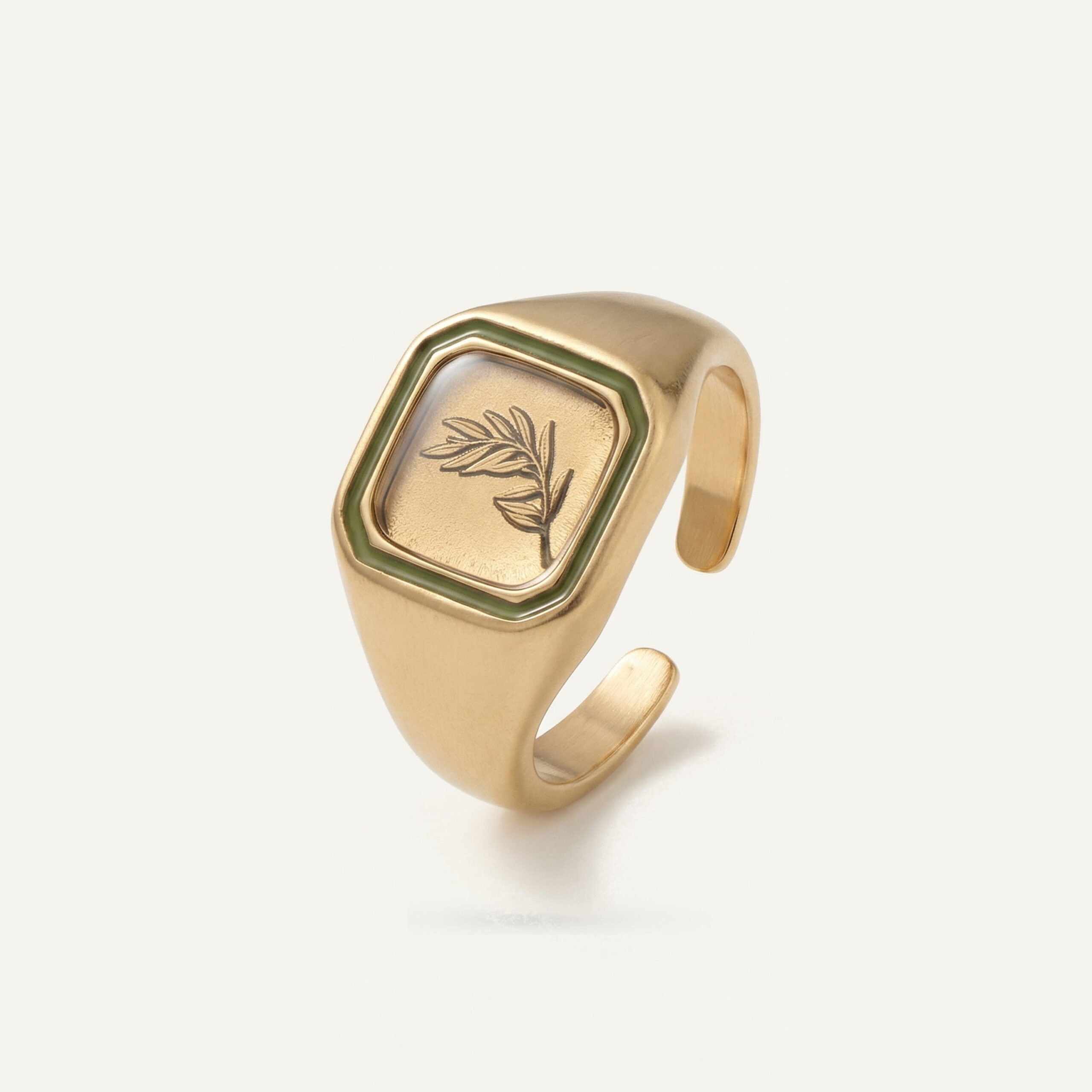 انگشتر ورق طلا زنانه سایا سری آترین از پولکی با جنس استیل 316 ساخته شده که بهدلیل مقاومت بالا و خاصیت ضدحساسیت، انتخابی مناسب برای استفاده روزمره است. پولک انگشتر با ابعاد 1.3 در 1.5 سانتیمتر و شکل هشتضلعی طراحی شده تا ساختاری متفاوت و متمایز از فرمهای کلاسیک ایجاد کند. آبکاری طلا با تکنولوژی PVD، دوام و ثبات رنگ را تضمین میکند و زمینه اصلی طرح از ورق طلای 24 عیار تشکیل شده است که ارزش و جلوهای لوکس به محصول میبخشد. رنگ طلایی و سبز زمینه، هماهنگی زیبایی با مفهوم طبیعت و اندوه آرام ایجاد کرده است. وزن حدود 6 گرم، تعادلی مناسب میان استحکام و راحتی فراهم میکند و طراحی فریسایز، امکان استفاده برای اندازههای مختلف انگشت را فراهم میسازد.