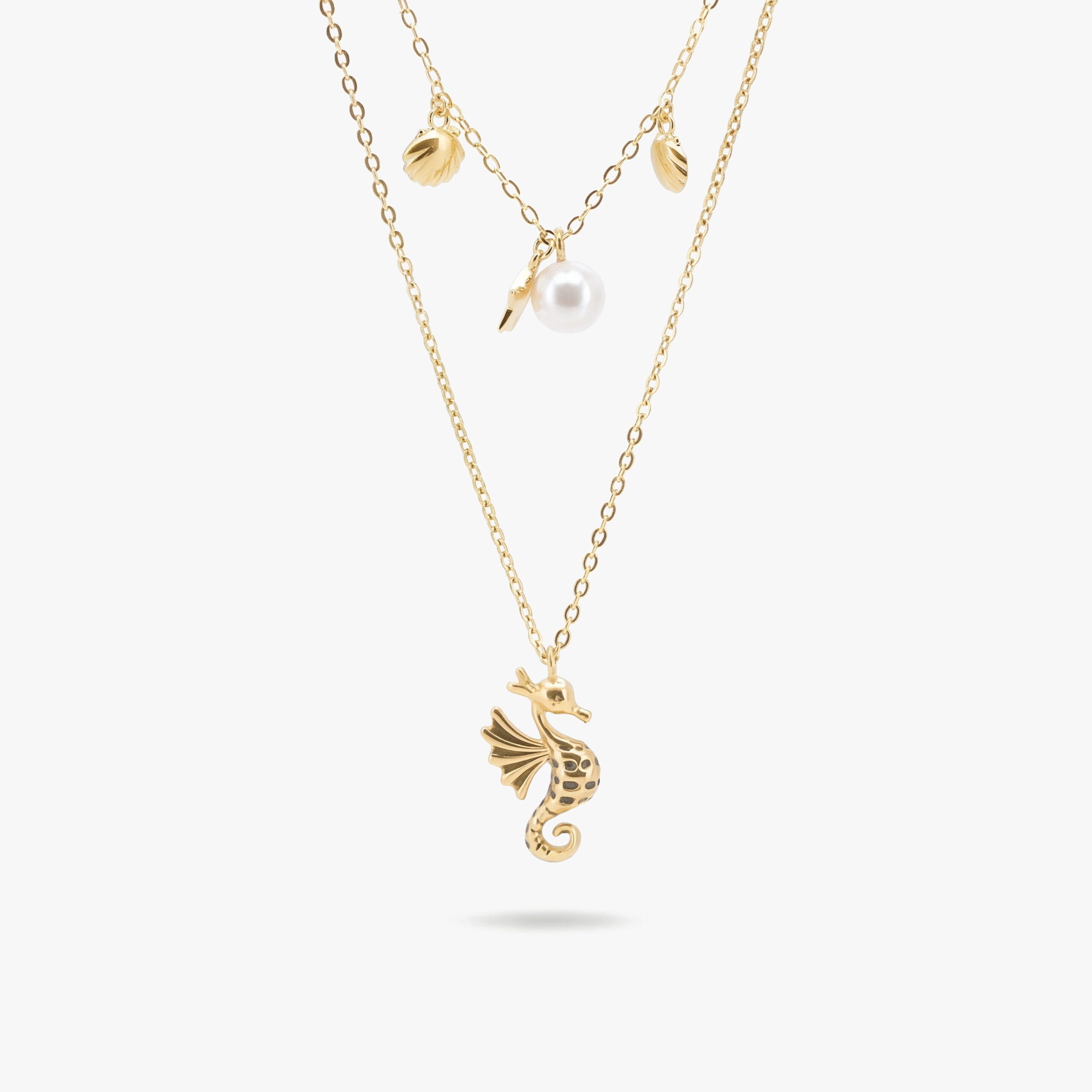 این محصول از نقره با عیار ۹۲۵ ساخته شده و پرداخت صیقلی آن، جلوهای خنثی، شیک و بسیار کاربردی دارد. جزئیات ظریف آویز اسب دریایی در کنار آویزهای کوچک و گوی مرکزی، بدون شلوغی، تعادلی زیبا میان سادگی و جذابیت ایجاد کردهاند. این ترکیب باعث شده گردنبند هم جلوه داشته باشد و هم برای استفاده روزمره کاملاً مناسب باشد.