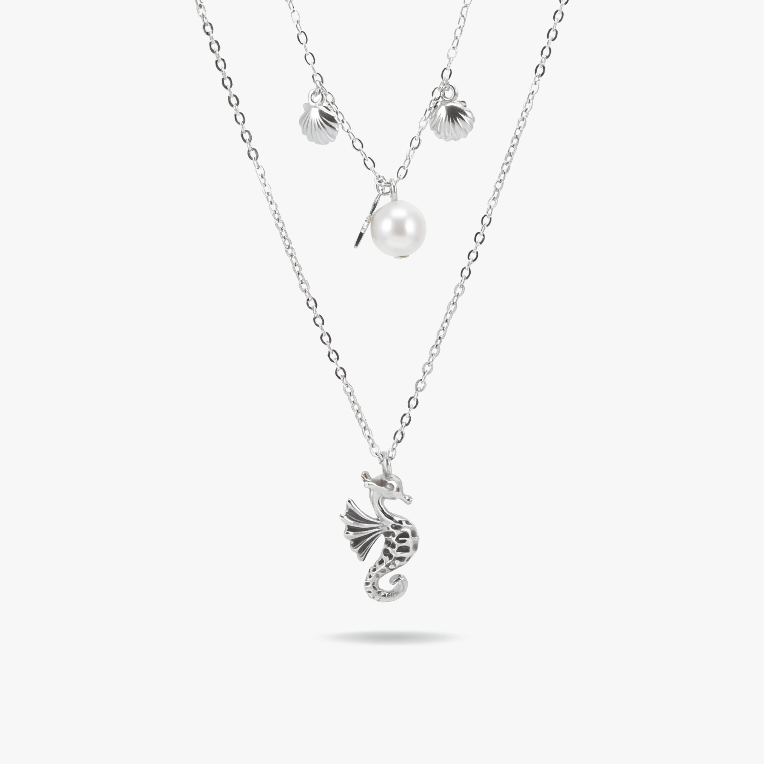 این محصول از نقره با عیار ۹۲۵ ساخته شده و پرداخت صیقلی آن، جلوهای خنثی، شیک و بسیار کاربردی دارد. جزئیات ظریف آویز اسب دریایی در کنار آویزهای کوچک و گوی مرکزی، بدون شلوغی، تعادلی زیبا میان سادگی و جذابیت ایجاد کردهاند. این ترکیب باعث شده گردنبند هم جلوه داشته باشد و هم برای استفاده روزمره کاملاً مناسب باشد.