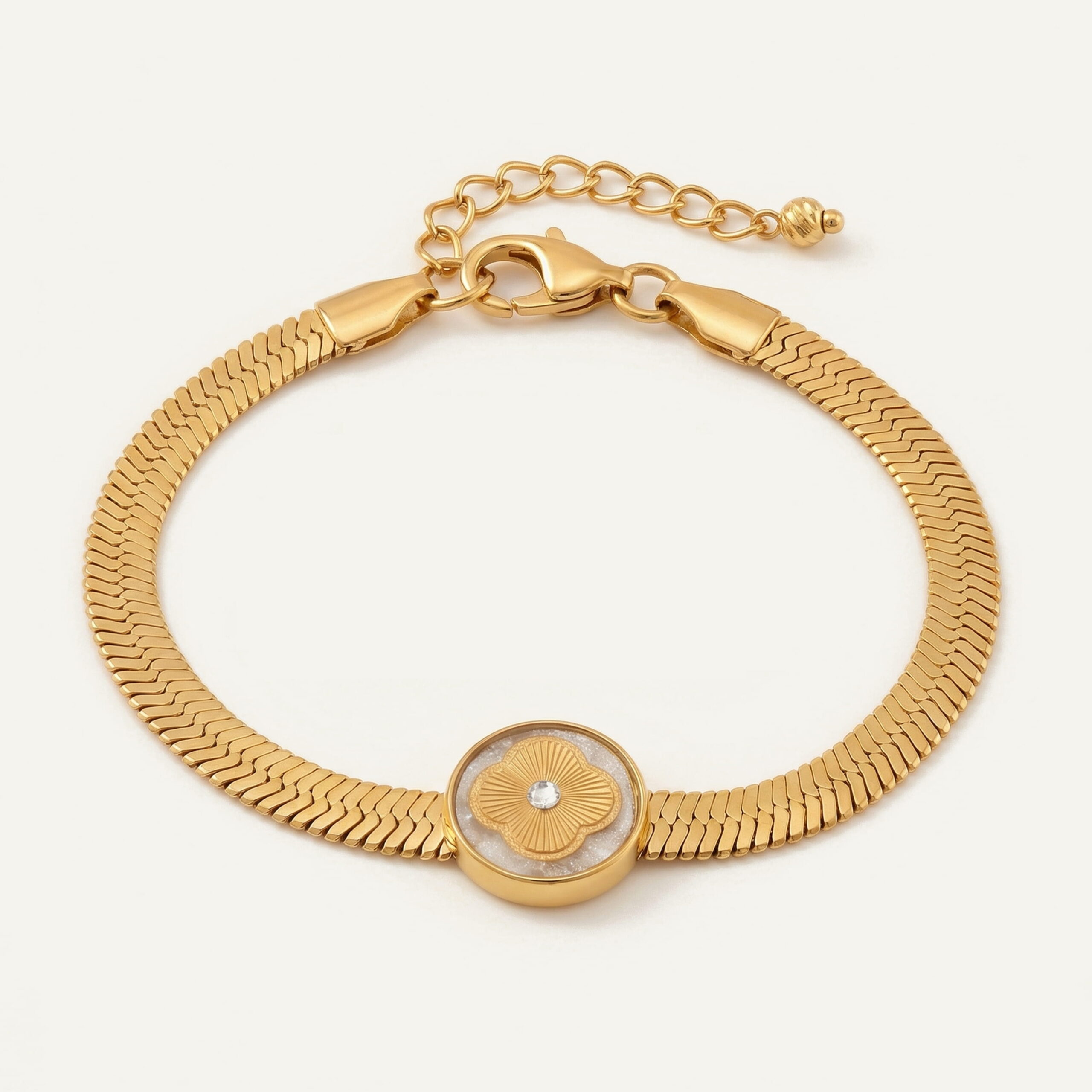 دستبند ورق طلا زنانه ونکلیف سری ماری بهگونهای طراحی شده که بهراحتی در کنار استایلهای مختلف قرار میگیرد. طراحی ظریف و اندازه متعادل پولک، این دستبند را به گزینهای مناسب برای استفاده روزمره، محیطهای کاری و حتی موقعیتهای رسمی تبدیل کرده است. ترکیب رنگ طلایی و سفید، بهسادگی با لباسهای تیره، روشن یا خنثی هماهنگ میشود و بدون جلب توجه افراطی، حس نظم و آرامش را به استایل اضافه میکند. این دستبند همچنین در کنار گردنبند ونکلیف سری ماری، یک نیمست هماهنگ و مینیمال ایجاد میکند که جلوهای یکدست و شیک دارد.