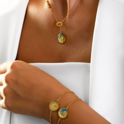 گردنبند زنانه ورق طلا و زنجیر نارین سری بیضی